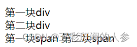 <div>第一块div</div> <div>第二块div</div> <span>第一块span</span> <span>第二块span</span>效果如图。