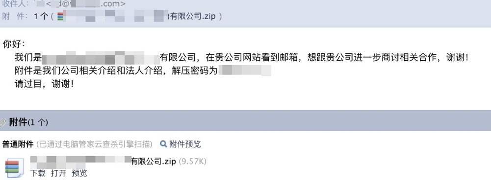 并且,在下⾯的案例中,笔者伪造的公司是跟受害者公司是⼀个区域的,因为如果你随便找了个其他地域的公司,受害者公司业务没覆盖到那边的话,很可能就不会理会你的邮件。