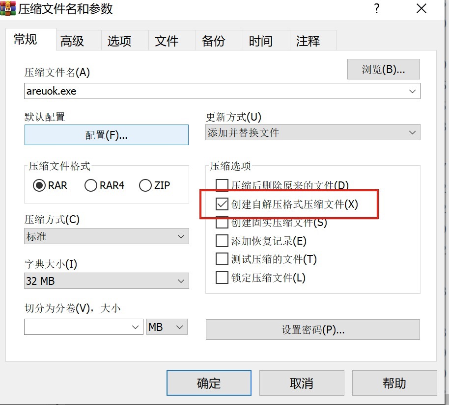 rar压缩⽂件,可以把⽂件进⾏压缩,然后运⾏后进⾏⾃解压的操作: