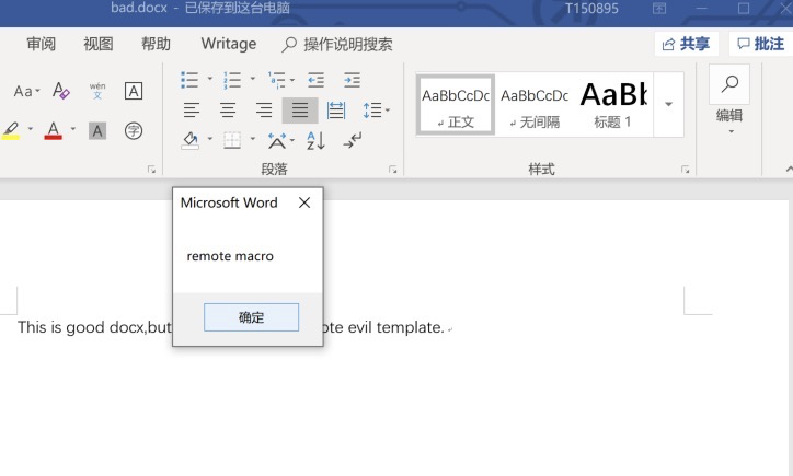 利⽤远程模板,因为不具备恶意宏代码,文件本身成功绕过了某杀软: