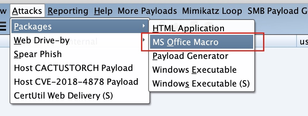 在word中可以植⼊宏来达到运⾏宏上线的⽬的,⽽cobaltstrike也正好⾃带了这种攻击⽅式: