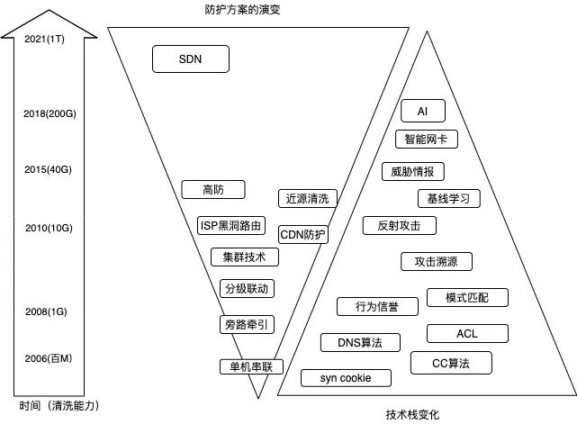 芯片技术和网络技术进步让发送大流量攻击易如反掌。各种浏览器内核能够执行js,可以非常容易制作攻击工具。业务环境的变化包括Web业务、云原生的API微服务,容器安全等让DDoS防护复杂度指数级增大。
