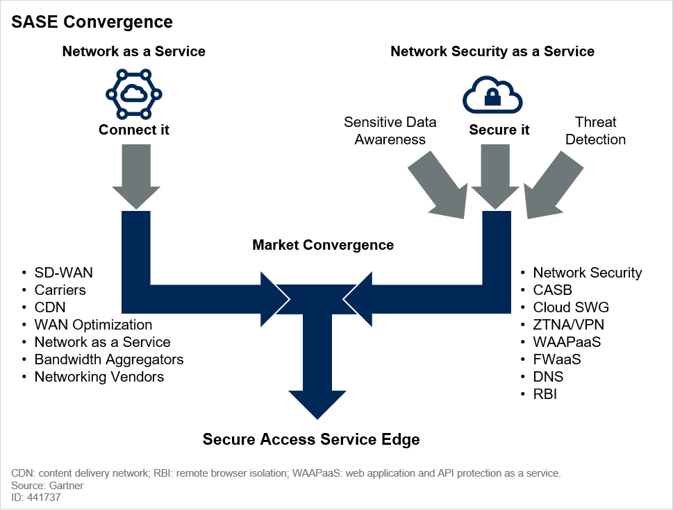 图2 Gartner SASE WAN边缘和安全边缘服务的融合