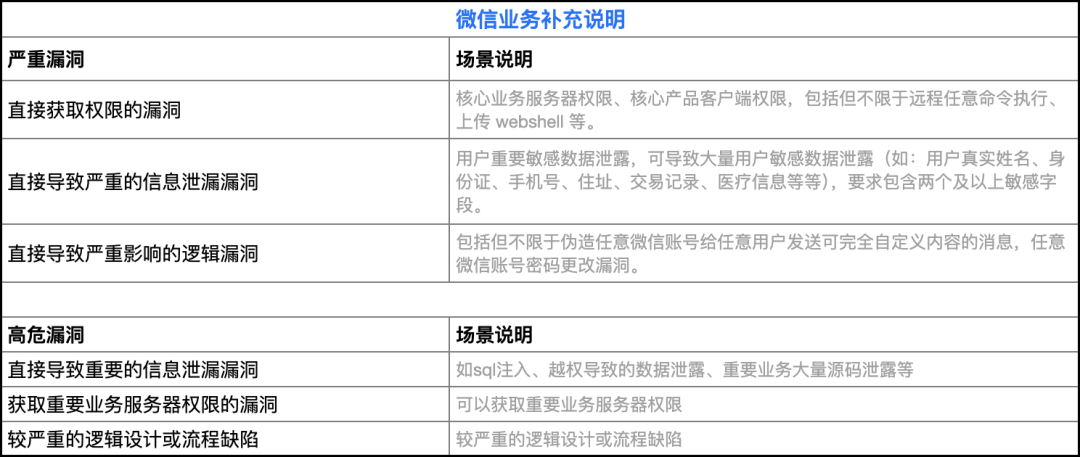 (针对活动范围内微信特定严重漏洞,额外激励提升至:3-6万/个)
