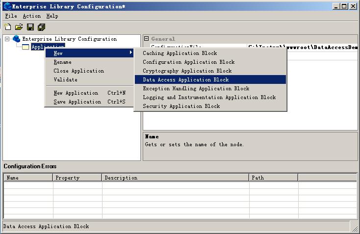 1.运行Enterprise Library Configuration 工具,选择File | Open Application 打开App.config文件