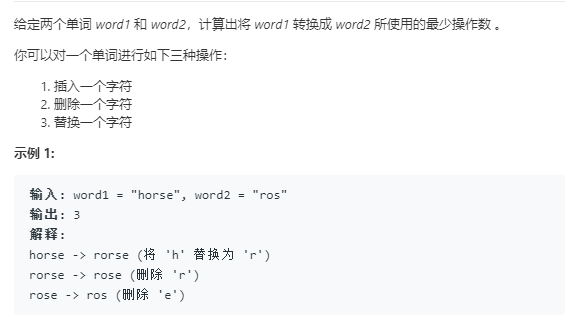 1)替换的情况:当word1中的前i-1个就可以变换为word2中的前j-1个,那么我们只要根据word1中的第i个是否等于word2中的第j个字符进行判断,