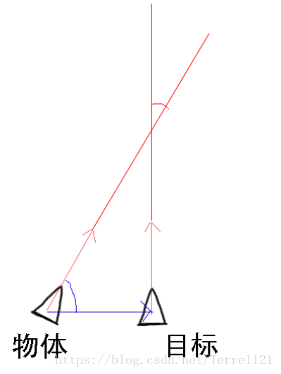 ②物体朝向与物体到目标当前位置向量所成的角度 ----------图中蓝色角度