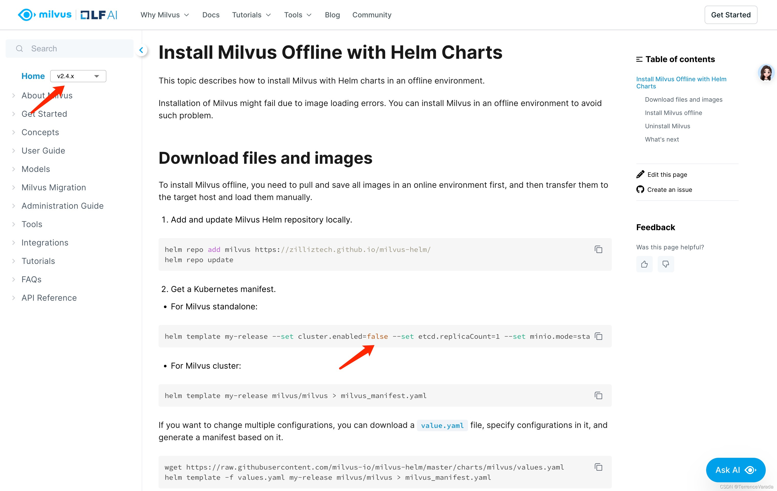 离线安装最新版 milvus 还是 Install Milvus Offline with Docker Compose 的方案比较流畅。