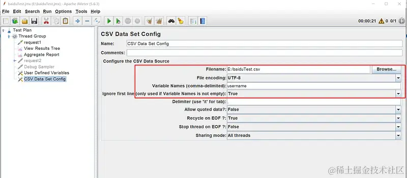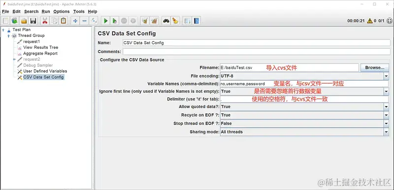 - CSV导入参数化(Add —— Config Element —— CSV Data Set Config)