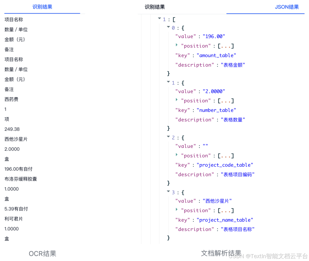 然而,在如今的 AI 时代,仅仅将图像变成文本字符(OCR 的输出)是远远不够的。一份文档的价值不仅在于其中的文字,更在于文字所代表的具体信息及其上下文关系。例如,发票上的“金额”数字旁通常会有“¥”或其他货币标识,而一份简历中的“工作经验”会按时间顺序排列在特定区域。