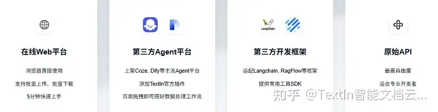 TextIn文档解析工具就是一款可以嵌入到知识库运作中的文档预处理工具,它有多种的接入方式,支持线上云端使用、API调用、MCP接口以及已上架如Dify、Coze等Agent搭建平台。