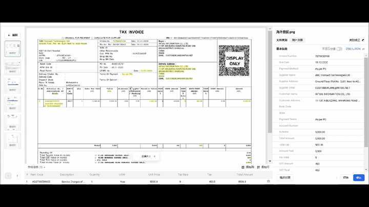 TextIn DocFlow支持国内外30+种票据识别管理和全球50+种语言的文字读取。批量上传票据后,系统自动完成识别分类。针对跨境常见票据,如商业发票、装箱单、提单、进口增值税专用发票和海关报关单等等,可精准识别并提取关键信息。
