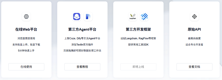 最主要的是TextIn开发者友好,提供清晰的API文档和灵活的集成方式,包括MCP Server、Coze、Dify插件,支持FastGPT、Cherry Studio、Cursor等主流平台。