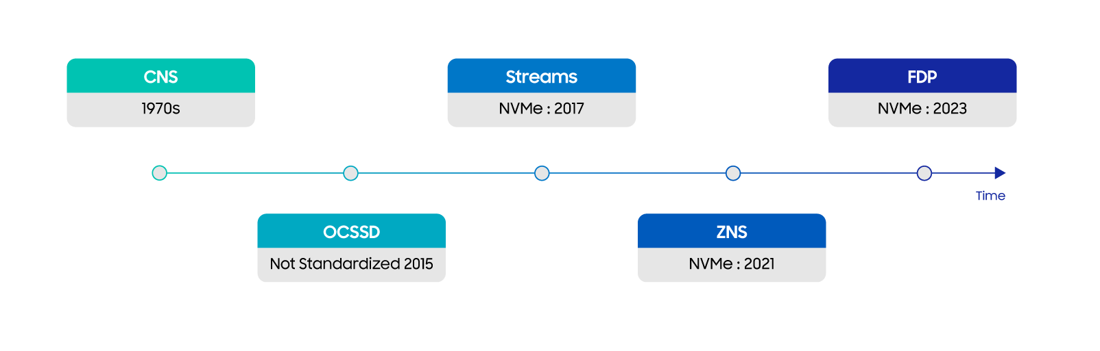 - FDP诞生: 尴尬之际,Meta 和 Google 这两个 “科技大佬” 带头搞出了 FDP 技术。它就像是找到了一个完美的平衡点,既不像传统的 CNS SSD 那样对物理层控制得那么粗糙,又不像 Open Channel SSD 那样让主机介入得太深,难以兼容,FDP 刚刚好填补了这个 “主机控制粒度” 的空白区域,平衡了灵活性与兼容性。