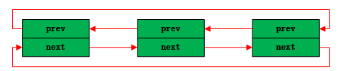定义了两个可以指向list_head结构的指针,其中next指针用来指向下一个链表节点,prev指针用来指向前一个链表节点。