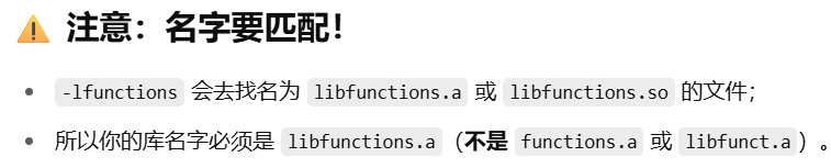 #-lfunctions:找名为 libfunctions.a 或 libfunctions.so 的文件。