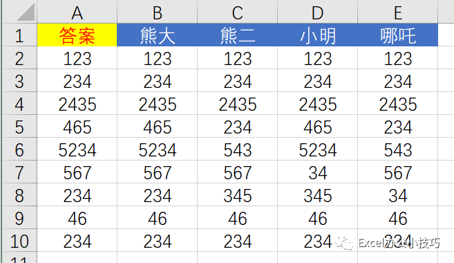 已知问题的答案和熊大~哪吒四位给出的答案,想看四位的答案正确与否,这时,CTRL+\就体现出作用了,已知数据如下: