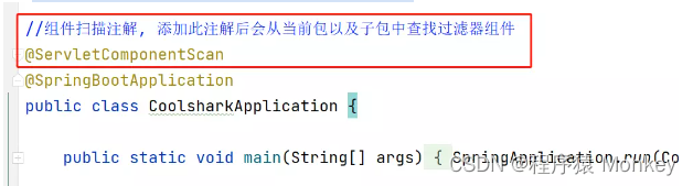 - 在工程名Appliction.java中添加Servlet组件扫描注解