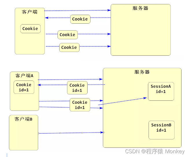 - Cookie: 类似打孔会员卡, 数据保存在客户端