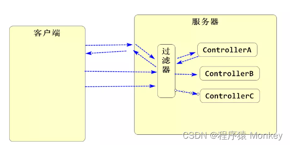 - 作用: 过滤器中的代码会在请求到服务器资源(静态资源和动态资源)之前和之后执行, 可以将某些请求资源时需要执行的重复性的代码写在过滤器里面,这样只需要写一次即可, 从而提高了开发效率.