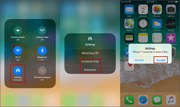 步骤 4:在接收 iPhone 上,出现提示时点击“接受”。等待传输完成,然后打开“音乐”或“文件”应用即可访问音频文件。