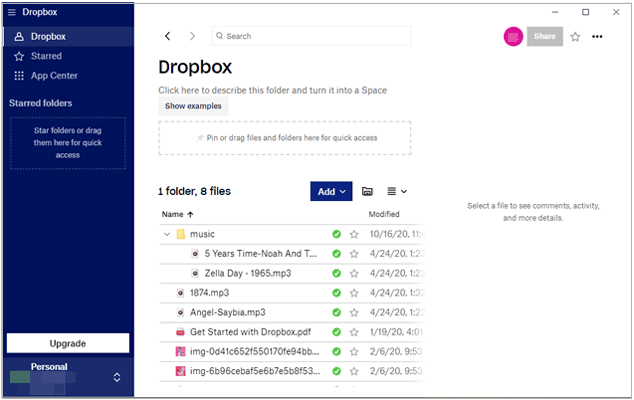 2. 将 PDF 文件上传到您的 Dropbox 帐户。在您的计算机上运行 Dropbox 应用,点击“添加”> 选择所需的 PDF 文件 > 点击“下一步”> 选择存储文件夹 > 点击“上传”按钮,将 PDF 文件同步到您的 Dropbox 帐户。