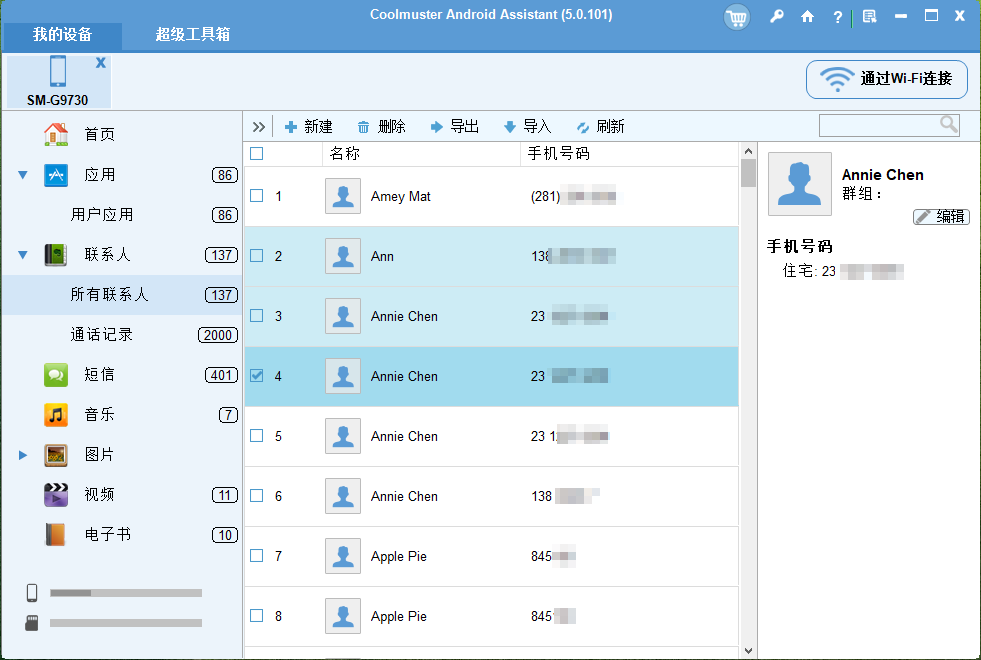 如果您拥有较新的三星手机型号,或者正在寻找比 Samsung Kies 功能更丰富的替代方案,那么Coolmuster Android Assistant是一个绝佳的选择。这款强大的工具旨在管理所有Android设备(包括三星手机),并提供一系列超越 Samsung Kies 的高级功能。