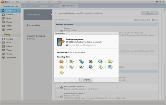 - 与三星Kies相比,它支持更多数据类型(包括短信、联系人、照片、视频、音乐、通话记录、应用程序、书籍和文档)。