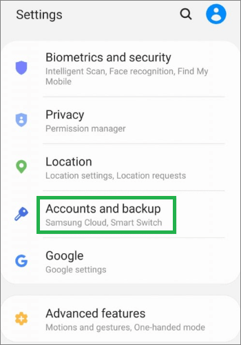 步骤 2. 打开“设置”,然后导航至“帐户和备份”。