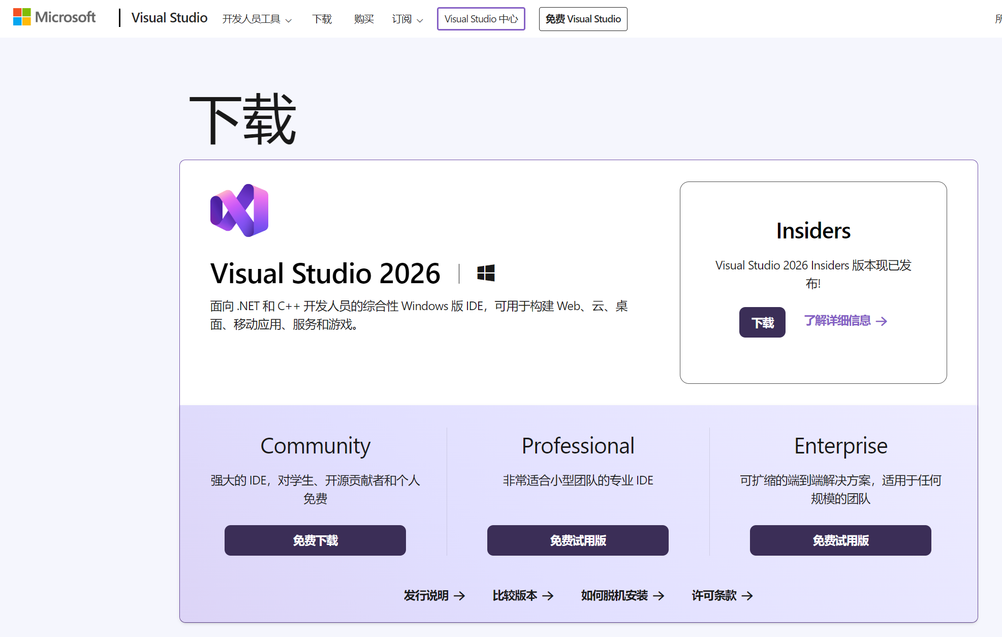 由于目前原来的VS2022下载的地方已经变成VS2026的下载地方:
