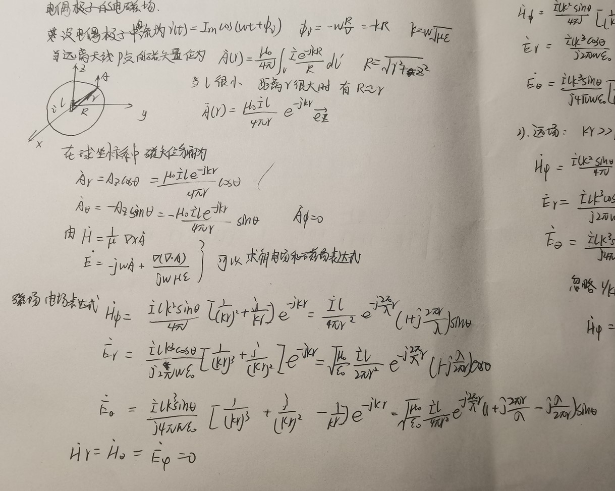 电偶极子的电位和电场强度分布仿真、电偶极子电磁辐射的仿真。