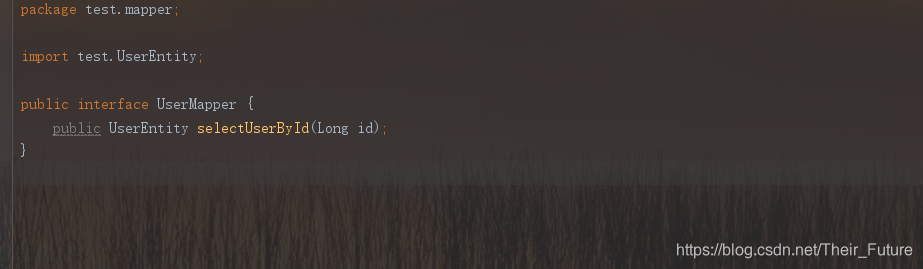 <select id="selectUser" parameterType="java.lang.Long" resultType="test.UserEntity">