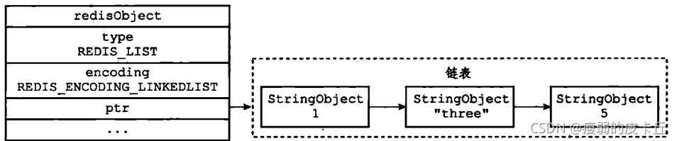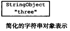 而 Stringob]ect字样下面的是字符串对象所保存的值。比如说,下图1代表的就是一个包含了字符串值"three"的字符串对象,它是图2的简化表示。