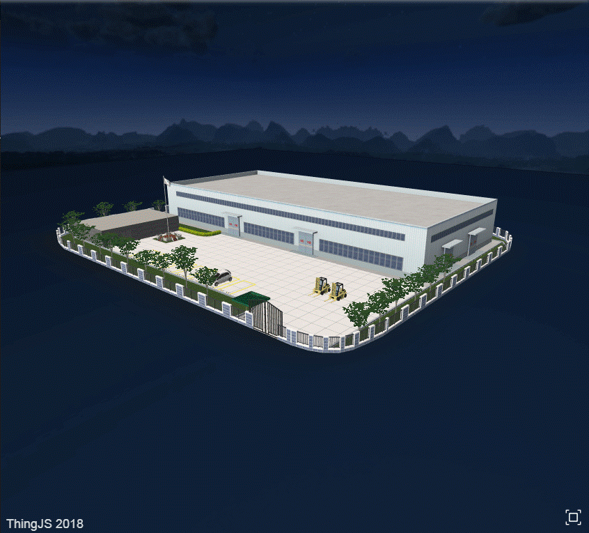 在现实世界中,所有物体都不是独立存在的,周围都存在相应环境,常见的环境元素有雨、电、风、光束等,都是3D仿真的主要对象。ThingJS提供了全套环境搭建方案。