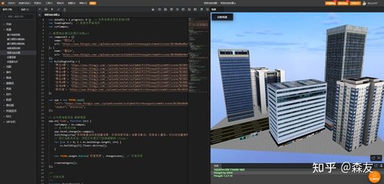 5、使用代码,获取“办公楼TMP”这个3D可视化园区物体的建筑,将其下的“办公楼楼层一”,“办公楼楼层二”,添加到本来只有外立面的“办公楼”对象身上。再将“XX工业园区-办公楼室内”和“办公楼TMP”这些临时对象删掉。