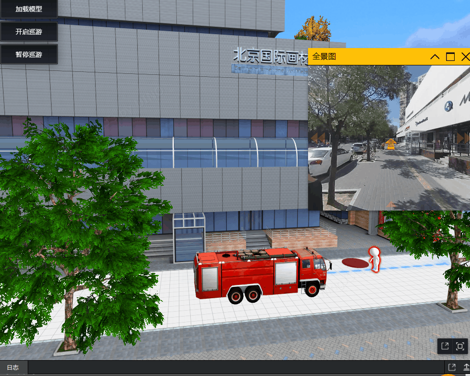 点击地面上的图标,全景图播放器中的图片跟随数字孪生可视化场景中小人的运动路径改变。点击全景图播放器中的热点,数字孪生可视化场景中小人跟随热点切换运动。