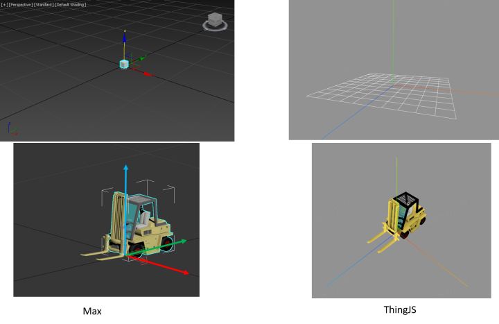 低代码ThingJS的坐标系是右手坐标系,即Y轴朝上, Z轴朝向屏幕外,如下图: