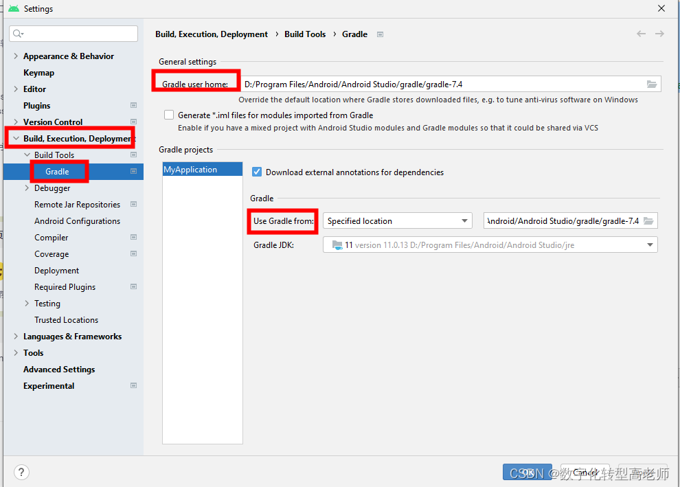 下载gradle 7.4版本解压 存放到 D:\Program Files\Android\Android Studio\gradle 目录下。
