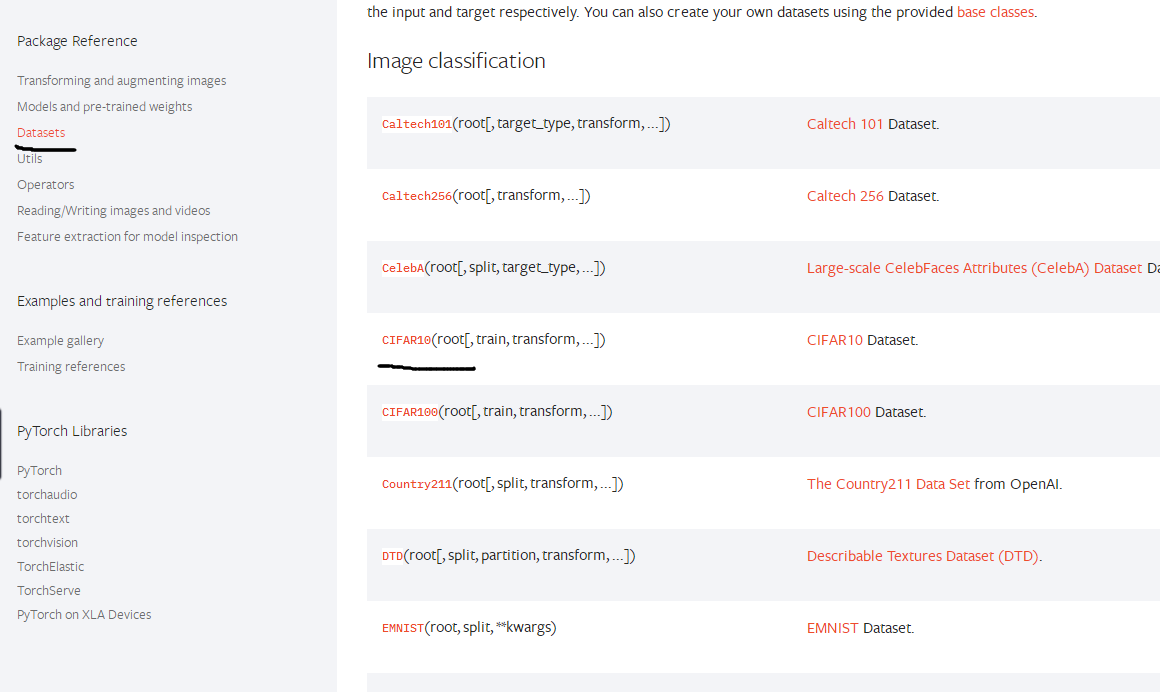 在pytorch官网的torchvision中可以看到提供的数据集以及详细的说明,现成的数据集使用起来也很方便。
