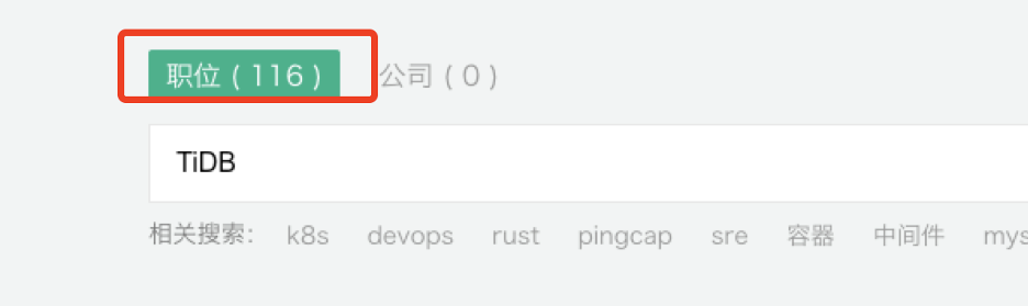 前半句可不敢吹过了,但是后半句倒是真真切切。所谓师父领进门,修行在个人。PingCAP 有可以带你进入分布式数据库技术领域的师父,也是该领域全球范围内的专家,所以专家如牛毛。然而这个专家定义也是有保质期的,专家不努力,明天就不如你呢!所以我们用“黄埔军校”来保障前半句,首先我们用严苛的选拔制度找到最优秀的你们,然后给挑战给压力给刺激,更给大家一个舞台切磋实践武艺。通过这种方式,给专家保鲜的同时,也培养了一批又一批该领域的专家团队。所以说在 PingCAP 是专家,走出这家公司,你还是专家。当然口说无评,数据为证,跟 TiDB 有关的招聘职位,随便一查: