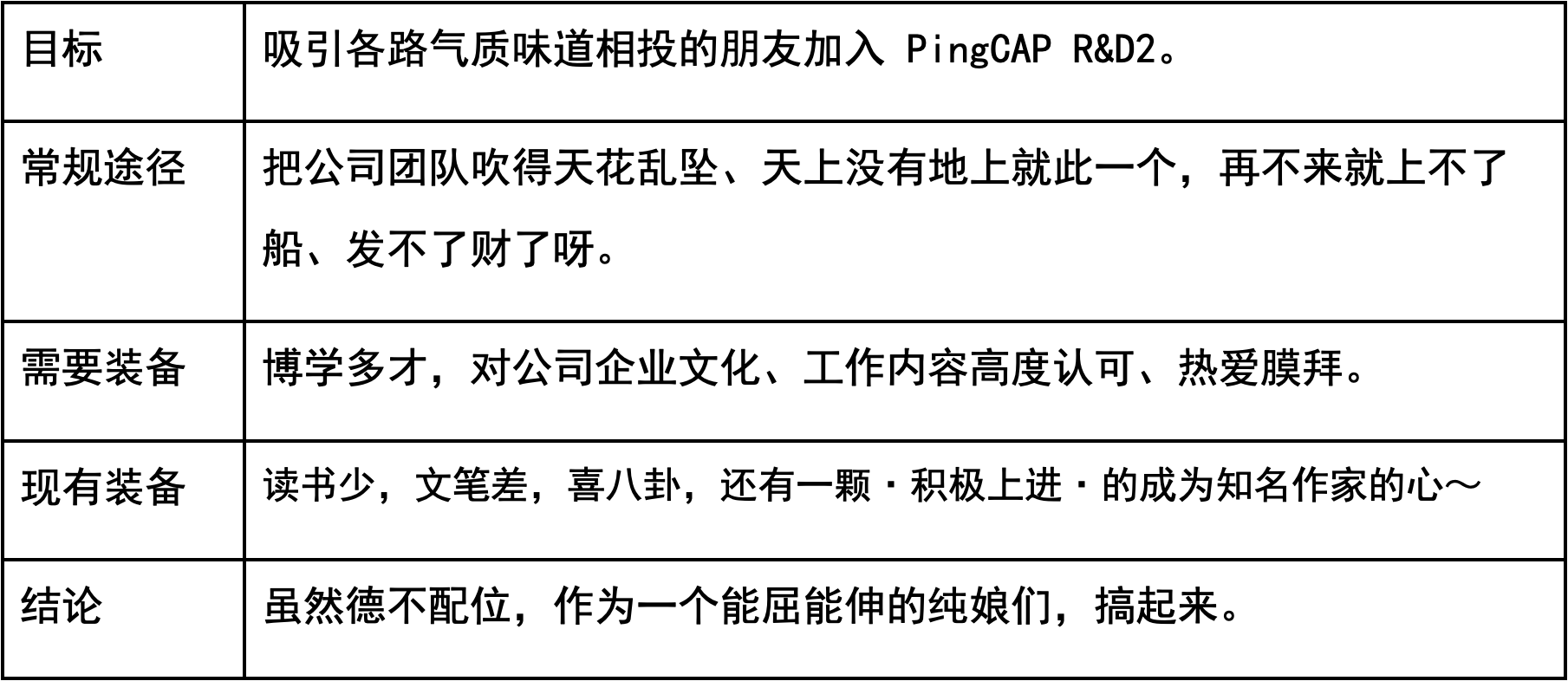 所以,如果你觉得自己目前能力稍稍欠佳,但是想要成长为分布式数据库领域的明日之星,那就来吧。当然,如果你觉得自己能力很 OK,想要来指导 TiDB 做得更高更远,我们也是求贤若渴。