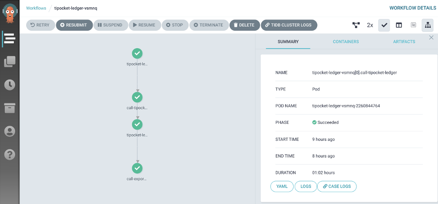 TiPocket 是一个同时集成 Chaos Mesh 和 Argo 的自动化测试平台,实现完全自动化的混沌实验。通常我们进行混沌实验的时候,存在很多步骤,比如部署待测试应用,运行 workload,以及注入异常,业务检查等等,为了让这些步骤完全的自动化起来,TiPocket 在 Chaos Mesh 的基础上引入了 Argo 工具,一方面 Chaos Mesh 提供丰富的故障注入能力,另一方 Argo 提供灵活的编排和调度能力。