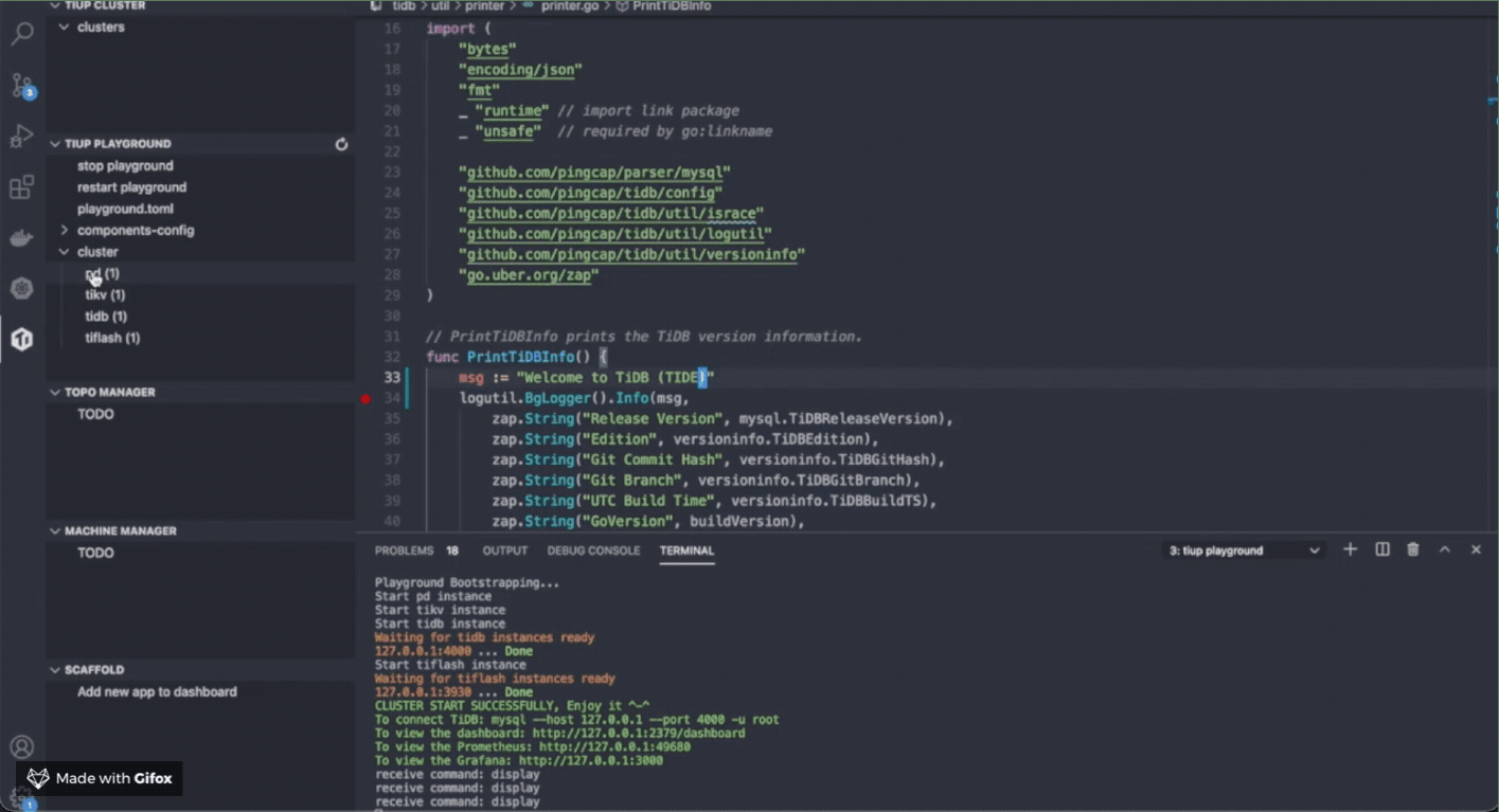 **B.A.D 团队的项目 TiDE 是一个基如今最流行的代码编辑器 Visual Studio Code 的 TiDB 插件,可以开发和本地/远程调试 TiDB 集群,让开发者不需要搞清楚 TiDB 的内部机制也能方便地在本地启动测试集群和实时调试编写,极大地提升了开发者开发和调试 TiDB 项目的体验。**本项目在本次 TiDB Hackathon 2020 中一举夺得了二等奖与 CTO 特别奖两项殊荣。