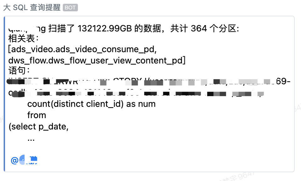 针对以上痛点,我们开发了大 SQL 查询实时报警系统,在用户提交 SQL 时,会做以下事情: