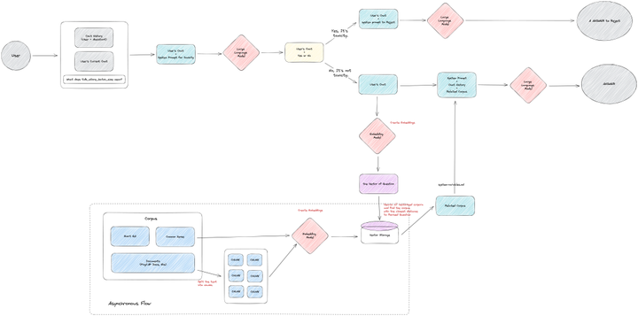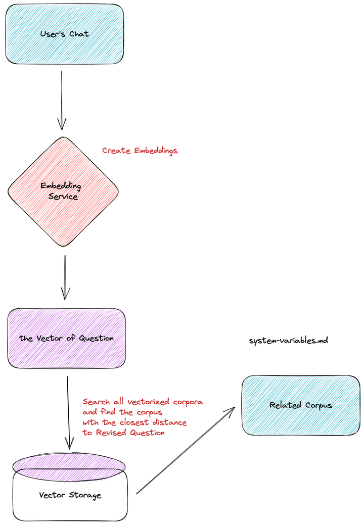 当用户发起一次对话时,系统会将用户的对话也通过 Embedding 模型转化成向量,再将这个向量放到向量数据库中和原有的预料进行查询。查询过程中,利用相似度算法(比如,cosine similarity,dot-product,等等),计算最相似的领域知识向量,并且提取出对应向量的文本内容。