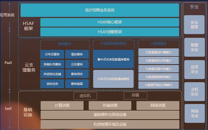 根据《医疗保障信息平台建设指南》,地方医疗信息化保障平台要按照国家统一标准规范建设云平台,其中必须包含 PaaS 层的能力,包括分布式服务、消息队列服务、分布式缓存服务、分布式日志服务、分布式数据访问服务、关系型数据库、非结构化存储服务、离线计算引擎、实时计算引擎、流计算引擎等。