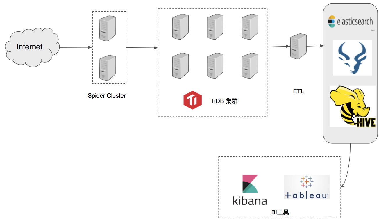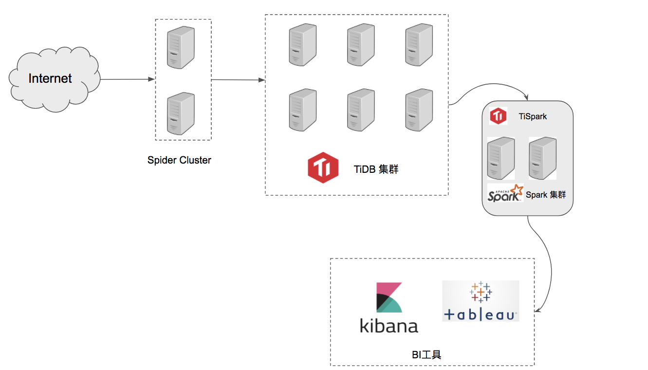 为从根本上解决以上问题,一面数据的技术团队决定通过增加部署一套高性能的数据库系统,以解决当前业务的痛点。 在评估和验证了 MySQL Sharding 和 MongoDB 等传统技术手段之后,团队认识到:基于 MySQL Sharding (即利用 MySQL 中间件分库分表) 架构在高可用安全能力,业务和查询的灵活支持以及运维管理难度和成本上都不尽如人意,有着诸多架构上和技术上的缺陷;而 MongoDB 比较适合存储爬虫数据,但迁移成本高,不管是数据还是应用程序都需要做侵入性修改和调整,难度和开发成本骤升。另外,作为 NoSQL 数据库,MongoDB 不支持 SQL 和 JOIN ,对 BI 工具的支持也不完善,数据分析师们无法直接使用。 最终从满足业务需求、降低切换成本和减少运维成本等角度考虑,一面数据选择了分布式关系型数据库-TiDB 作为业务的首选事务型数据库。