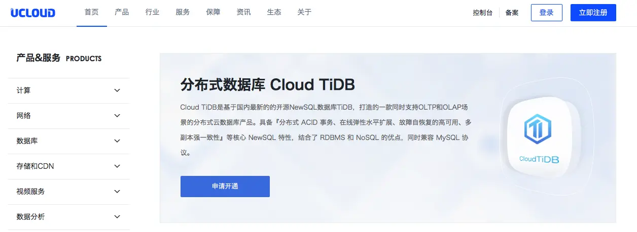 https://www.ucloud.cn/site/product/cloudtidb.html