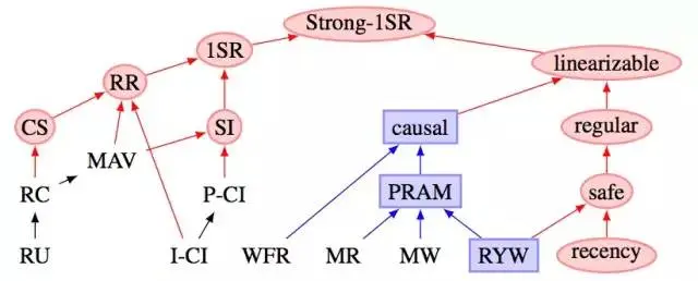 Monotonic Atomic View - 这个级别是 read committed 的增强,提供了一个原子性的约束,当一个在 T1 里面的 write 被另外事务 T2 观察到的时候,T1 里面所有的修改都会被 T2 给观察到。