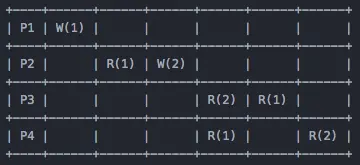 对于 P3 和 P4 来说,因为之前已经有新的写入,所以他们只能读到 2,不可能读到 1。